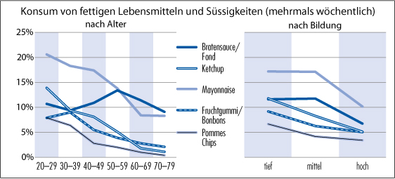 Konsum von fettigen Lebensmitteln und Süssigkeiten 2010