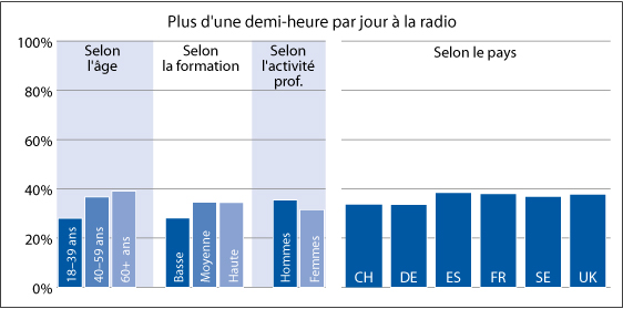 Questions posées : « Combien de temps, sur un jour ouvrable ordinaire, consacrez-vous dans l’ensemble à la télévision, à la radio et à la presse écrite ? Et combien de ce temps passez-vous à regarder, écouter et lire des nouvelles ou des émissions traitant de sujets politiques ou d’actualité ? »
