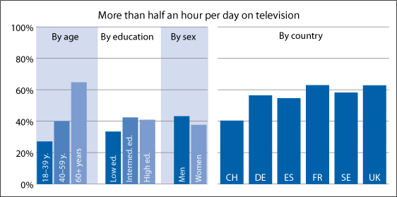 Question wording: “On an average weekday, how much time, in total, do you spend watching television/listening to the radio/reading the newspapers? And how much of this time is spent watching/listening to/reading information about politics and current affairs?”