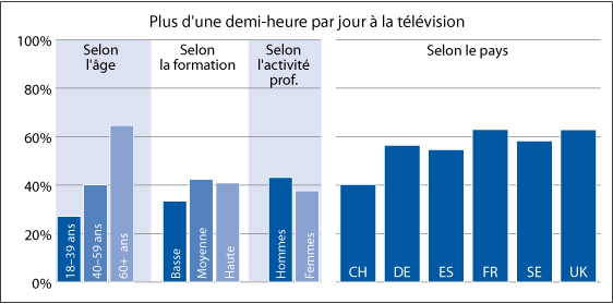 Questions posées : « Combien de temps, sur un jour ouvrable ordinaire, consacrez-vous dans l’ensemble à la télévision, à la radio et à la presse écrite ? Et combien de ce temps passez-vous à regarder, écouter et lire des nouvelles ou des émissions traitant de sujets politiques ou d’actualité ? »