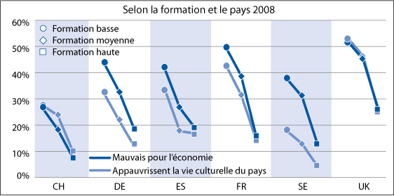 « Les immigrants sont mauvais pour l’économie » et « Les immigrants appauvrissent la vie culturelle du pays », selon la formation 2008