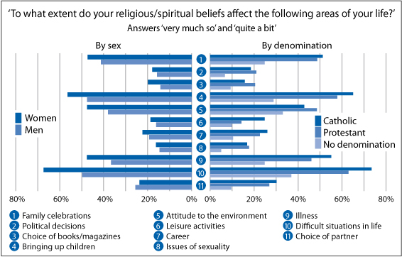 Question wording: “To what extent do your religious beliefs affect the following areas of your life?”