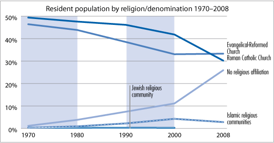 Belonging to a religion or denomination: proportion of respondents who did not consider themselves as belonging to any particular religion or denomination.