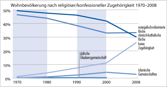 Bevölkerung nach religiöser Zugehörigkeit 1970-2008
