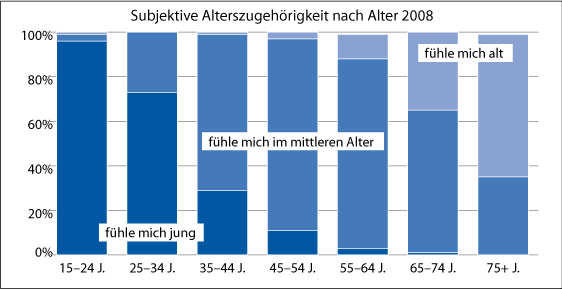 Subjektive Alterszugehörigkeit nach Alter 2008