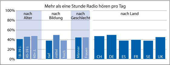 Fragestellung: «Wie viel Zeit verbringen Sie an einem gewöhnlichen Werktag insgesamt mit Fernsehen/Radio hören/Zeitung lesen? Wie oft benutzen Sie das Internet oder E-mail – egal ob zu Hause oder am Arbeitsplatz – für Ihren persönlichen Gebrauch?»