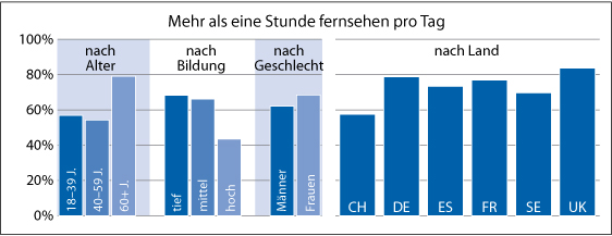 Fragestellung: «Wie viel Zeit verbringen Sie an einem gewöhnlichen Werktag insgesamt mit Fernsehen/Radio hören/Zeitung lesen? Wie oft benutzen Sie das Internet oder E-mail – egal ob zu Hause oder am Arbeitsplatz – für Ihren persönlichen Gebrauch?»