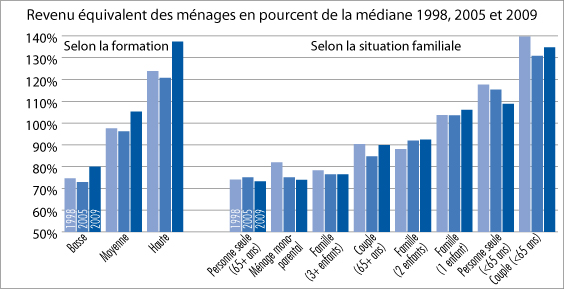Revenu équivalent des ménages 1998, 2005 et 2009