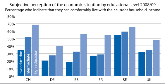 Educational levels: low: ISCED 0-2 (compulsory schooling, pre-vocational education); intermediate: ISCED 3-4 (apprenticeship, matura); high: ISCED 5-6 (university, other tertiary).