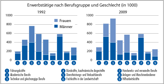 Stichprobengrösse: BFS, SAKE 1992: 16’921; BFS, SAKE 2009: 49’498; gewichtete Daten.