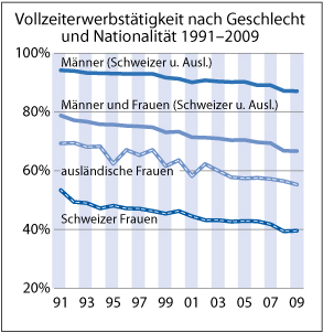 Vollzeiterwerbstätigkeit nach Geschlecht und Nationalität 1991-2009