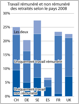 Travail rémunéré et non rémunéré des retraités selon le pays 2008