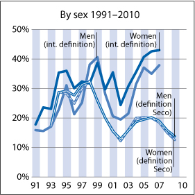 Long-term unemployment: minimum one year unemployed, as a percentage of all unemployed persons.