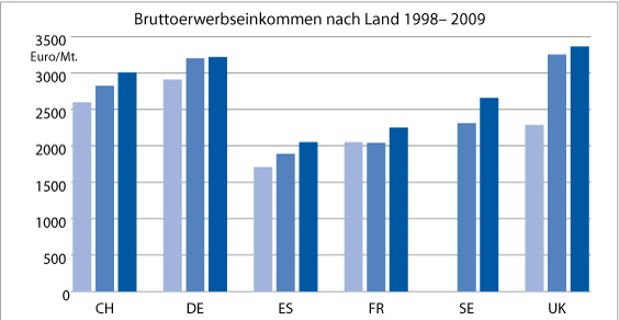 Bruttoerwerbseinkommen nach Land 1998-2009