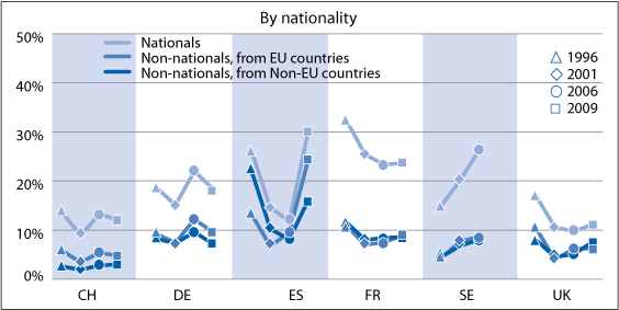 Unemployment rate in international comparison by nationality 1996-2009