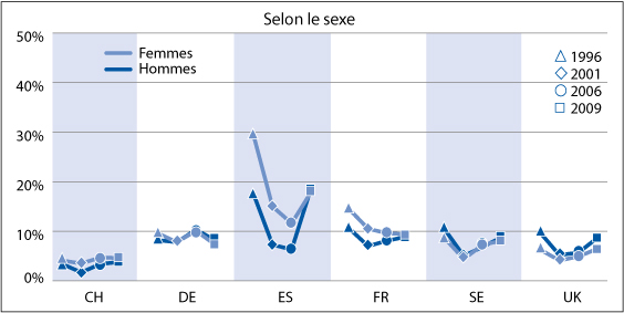 Taux de chômage en comparaison internationale selon le sexe 1996-2009
