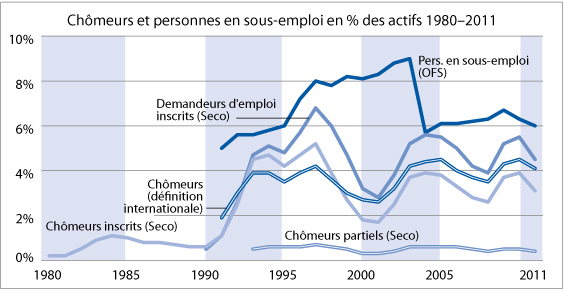Chômeurs ou personnes au chômage (définition internationale : OFS et OCDE) : personnes qui n’ont pas d’emploi, qui en cherchent un et qui sont disponibles pour un nouveau travail.