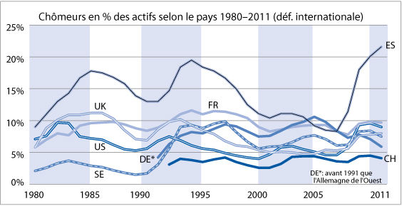 Chômeurs selon le pays 1980-2011