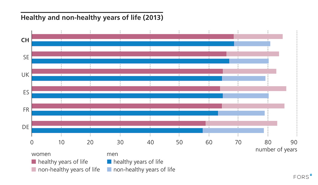 Healthy years of life = a good state of health is defined as the absence of functional limitations/ symptoms that affect everyday life.