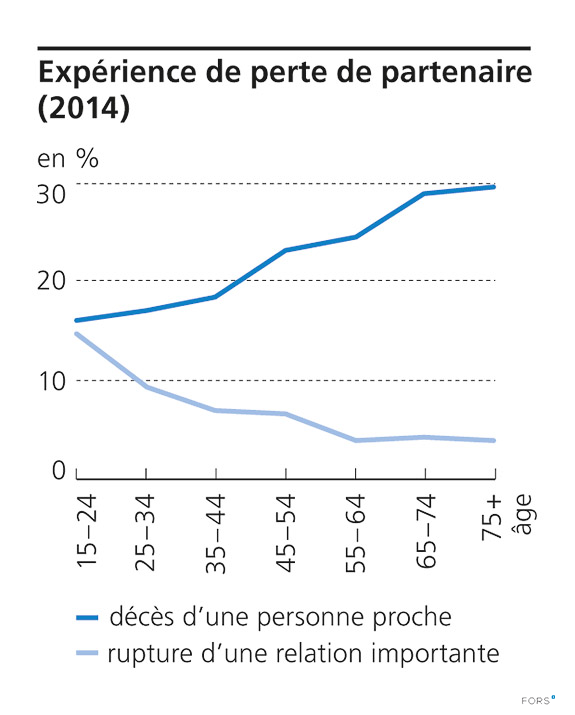 Question posées: « Durant les 12 derniers mois, une personne qui vous était proche est-elle décédée ? » « Durant les 12 derniers mois, une relation très proche et importante s’est-elle terminée – rupture, séparation, divorce ? ».