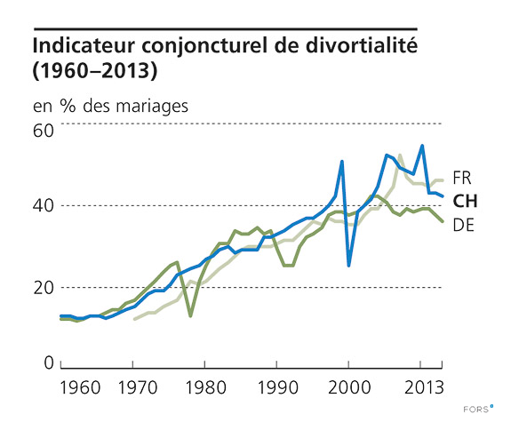 Taux de divorce = évolution dans le temps du pourcentage moyen des mariages dissous.