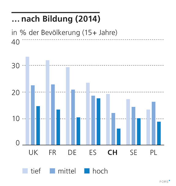 Stichprobengrösse: ESS 2014 (ES, UK: 2012): 1532–3045, gewichtete Daten