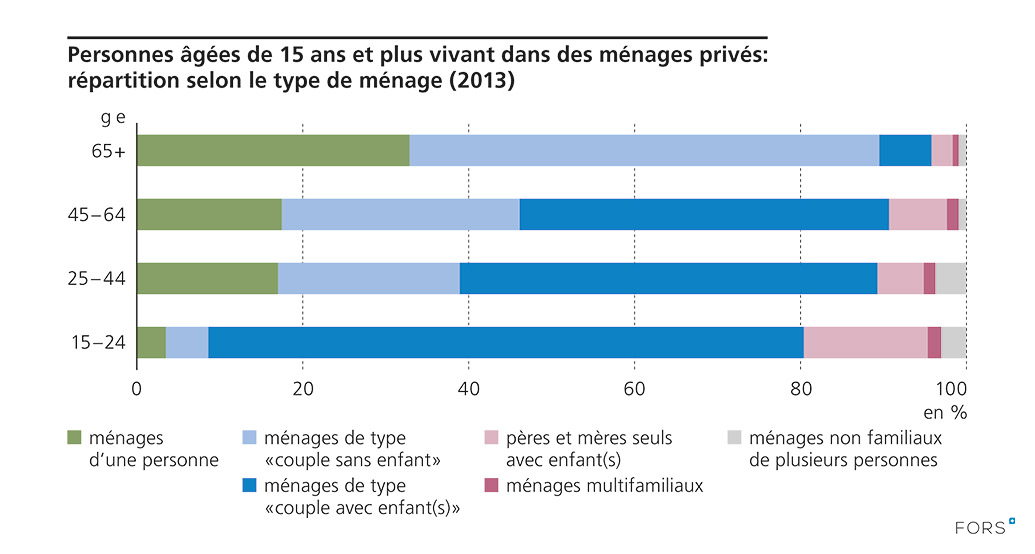 Personnes âgées de 15 ans et plus vivant dans des ménages privés: répartition selon le type de ménage