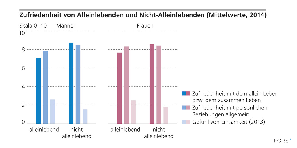 Zufriedenheit von Alleinlebenden und Nicht-Alleinlebenden