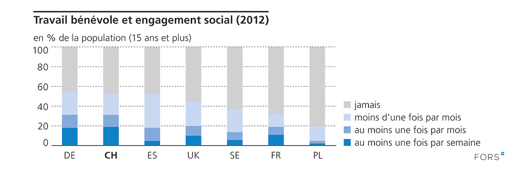 Question posée: « Au cours des 12 derniers mois, dans quelle mesure avez-vous exercé des activités de bénévolat au profit d’associations, de groupes d’intérêt ou d’organisations d’intérêt public ? »