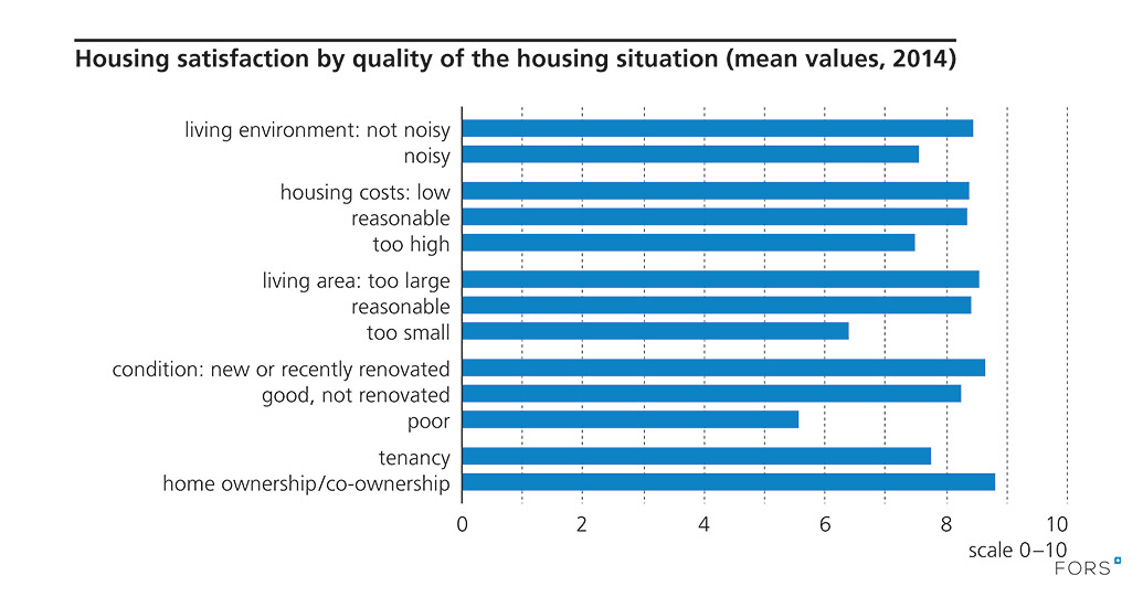 Question wording – housing satisfaction: “Overall, how satisfied are you with your apartment/house? (0 means ‘not at all satisfied’ and 10 ‘completely satisfied’).” Response categories for the quality attributes: yes/no.