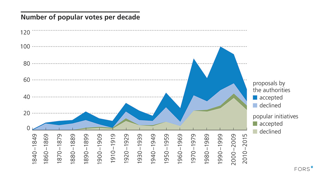 Sources: Data Swissvotes 1848–2012 (supplemented by gfs 2013/2014 and Swiss Federal Chancellery 2014 and 2015)