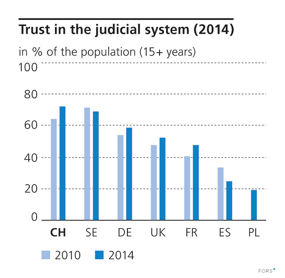 Question wording: “Please tell how you would personally assess your trust (in the judiciary system, in the police)?” The charts show the proportion of respondents who marked values between 6 and 10 on a scale between 0 and 10.