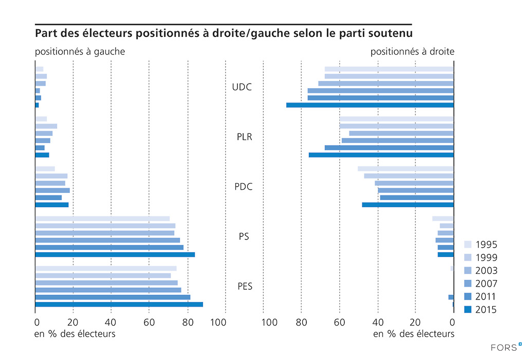 Question posée dans le cadre du PSM: « A propos de politique, les gens parlent de gauche et de droite. Où vous situez-vous personnellement, si 0 signifie ‹ gauche › et 10 ‹ droite › ? » (question très similaire à celle posée dans le cadre de l’enquête Selects).