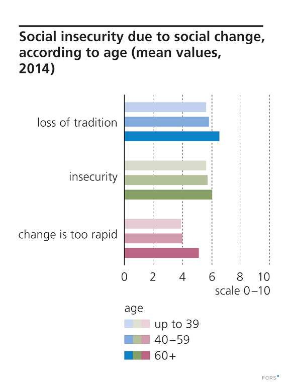 Question wording: Loss of tradition: “I sometimes feel that many things that our parents stood for are just going to ruin before our very eyes.” Uncertainty: “With everything so uncertain these days, it almost seems as though anything could happen.” Change that is occurring too quickly: “Everything changes so quickly these days that I often have trouble deciding which are the right rules to follow.” Scale for all questions from 0 (completely disagree) to 10 (fully agree).