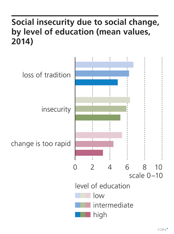 Question wording: Loss of tradition: “I sometimes feel that many things that our parents stood for are just going to ruin before our very eyes.” Uncertainty: “With everything so uncertain these days, it almost seems as though anything could happen.” Change that is occurring too quickly: “Everything changes so quickly these days that I often have trouble deciding which are the right rules to follow.” Scale for all questions from 0 (completely disagree) to 10 (fully agree).