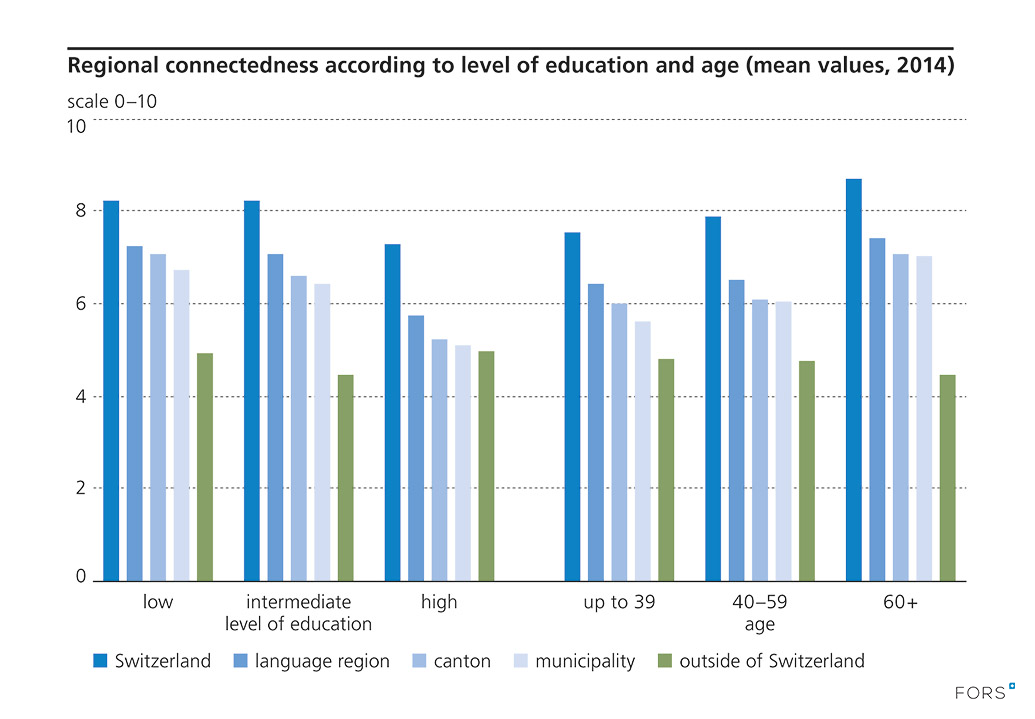 Regional connectedness according to level of education and age