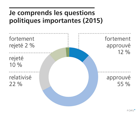 « J’ai l’impression de comprendre assez bien les problèmes politiques majeurs auxquels la Suisse est confrontée (tout à fait d’accord, plutôt d’accord, ni d’accord, ni en désaccord, plutôt en désaccord, tout à fait en désaccord).»