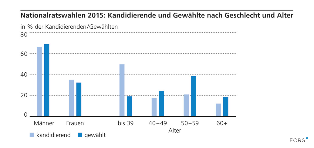 Quellen: BFS, Statistik zu kandidierenden und gewählten Personen bei Nationalratswahlen 2015