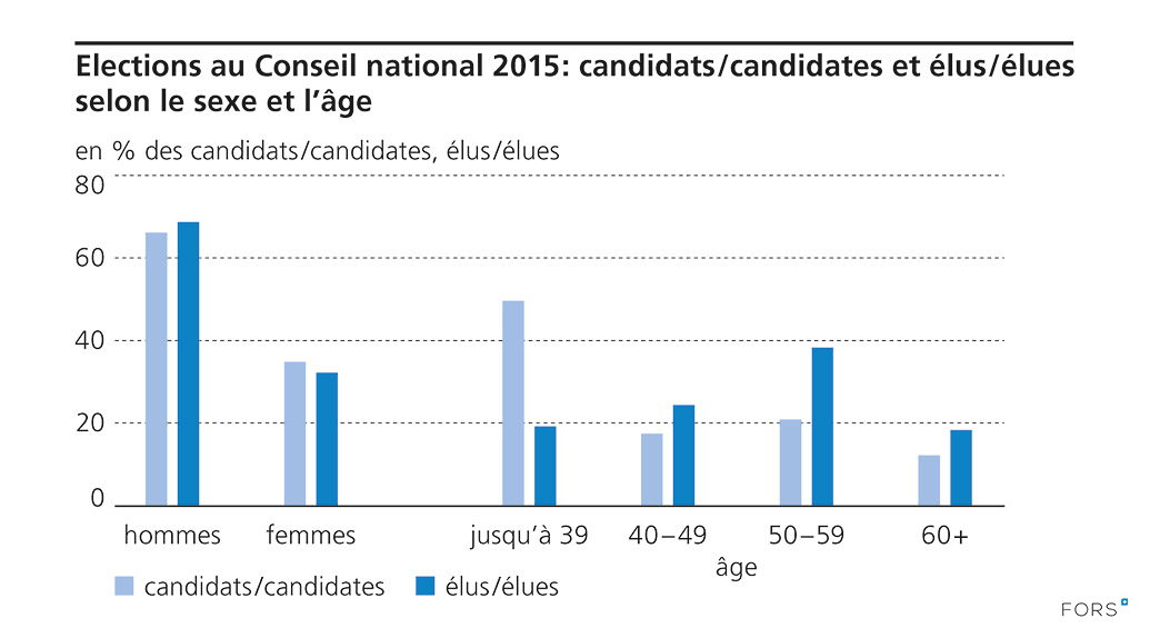 Sources: Office fédéral de la statistique, statistique des candidats et personnes élues au Conseil national 2015