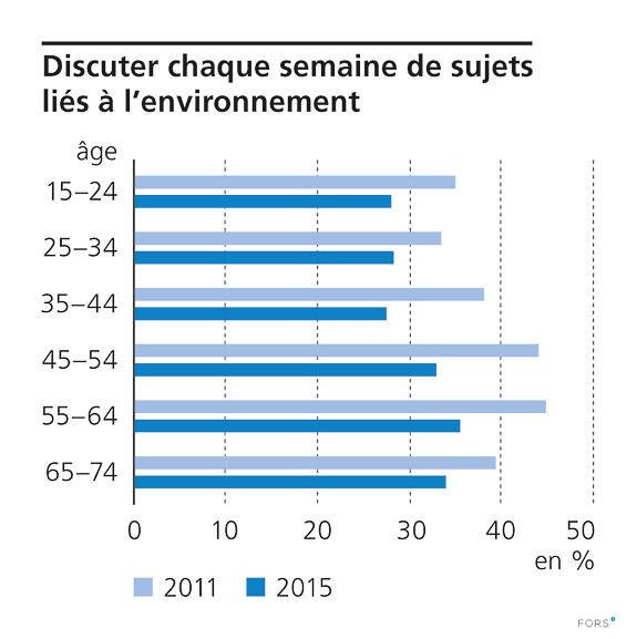 Questions posée: «A quelle fréquence discutez-vous de problèmes liés à l’environnement en privé, à la maison ou avec des amis?»