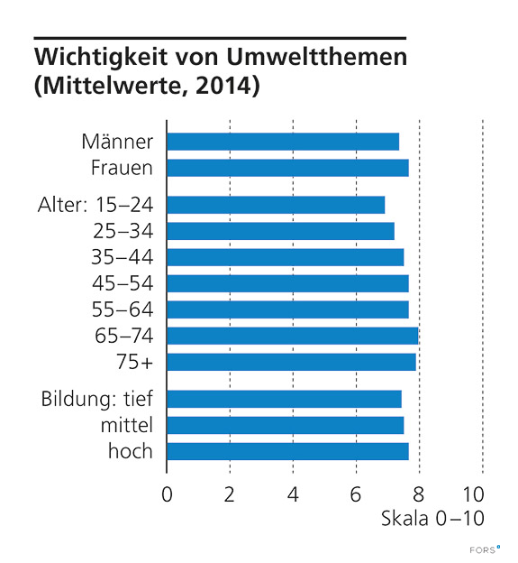 Fragestellung: «Welchen Stellenwert hat für Sie der Umweltschutz? (0 bedeutet ‹gar nicht wichtig› und 10 ‹sehr wichtig›).»