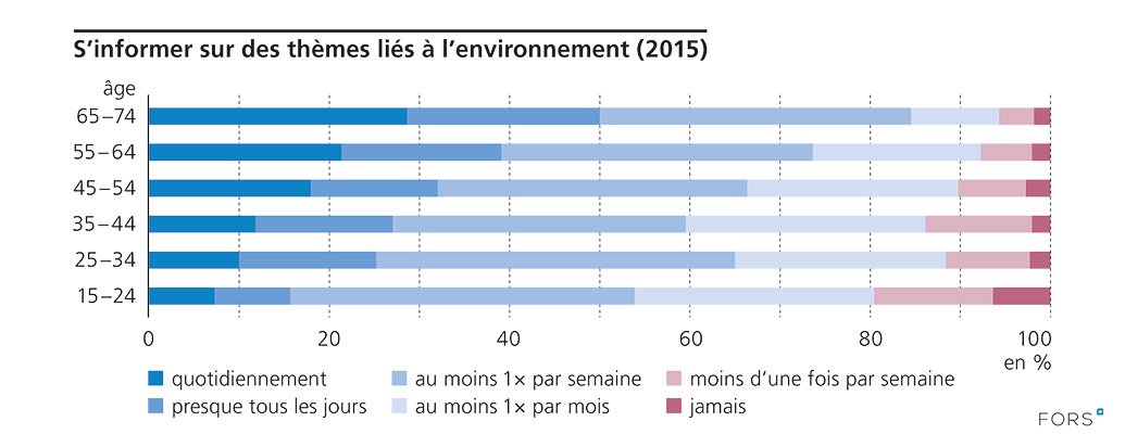 Questions posée: « A quelle fréquence vous tenez-vous informé(e)s à titre privé sur des thèmes liés à l’environnement en lisant le journal, en surfant sur Internet ou en regardant la télé? »