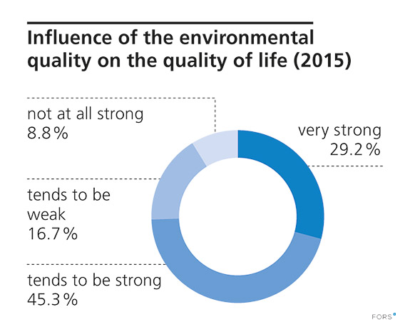 Question wordings: “How would you assess the environmental quality in your living environment/in Switzerland/worldwide? For each of the following spheres (e.g. ‘the environmental quality where you live’), please indicate whether it has a very strong, relatively strong, relatively weak or very weak impact on your quality of life.”