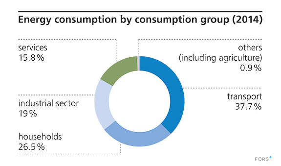 Sources: SFOE, Swiss overall energy statistics (using a new survey method from 1990)