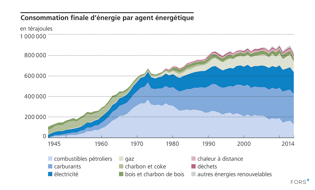 Sources: OFEN, statistique globale suisse de l’énergie (nouvelle méthode de relevé à partir de 1990)