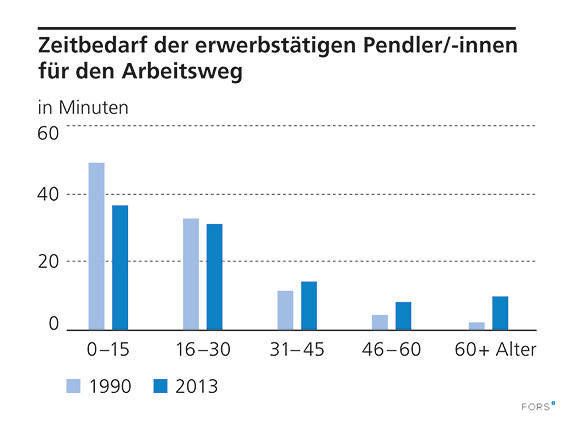 Zeitbedarf der erwerbstätigen Pendler/-innen für den Arbeitsweg