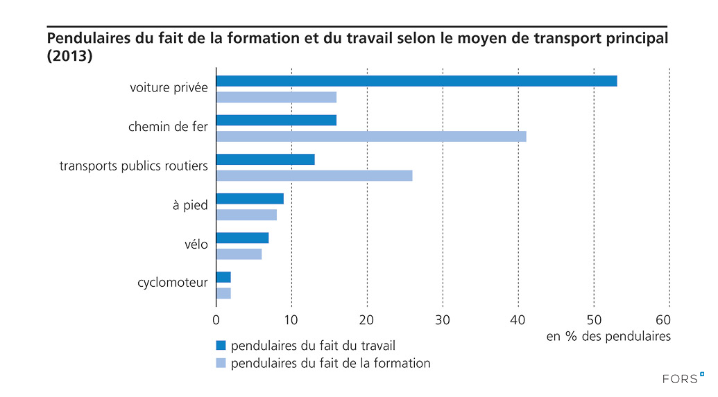 Pendulaires du fait de la formation et du travail selon le moyen de transport principal