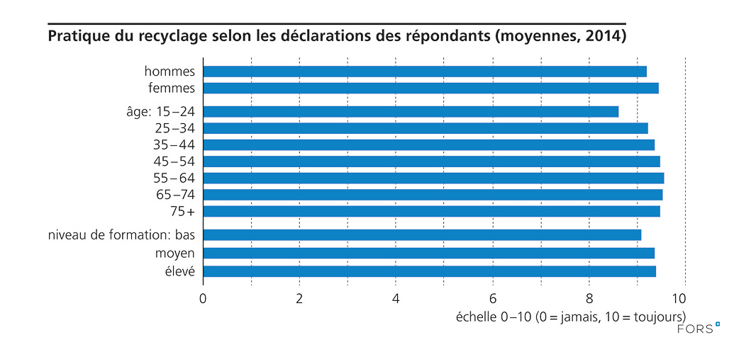 Question posée: « A quelle fréquence triez-vous le verre, les piles, le PET, le papier, etc. ? » 0 signifie « jamais » et 10 « toujours ».