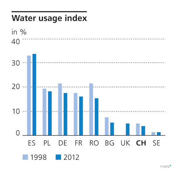 Water usage index = annual fresh water consumption in % of the long-term fresh water resources (surface and ground water).