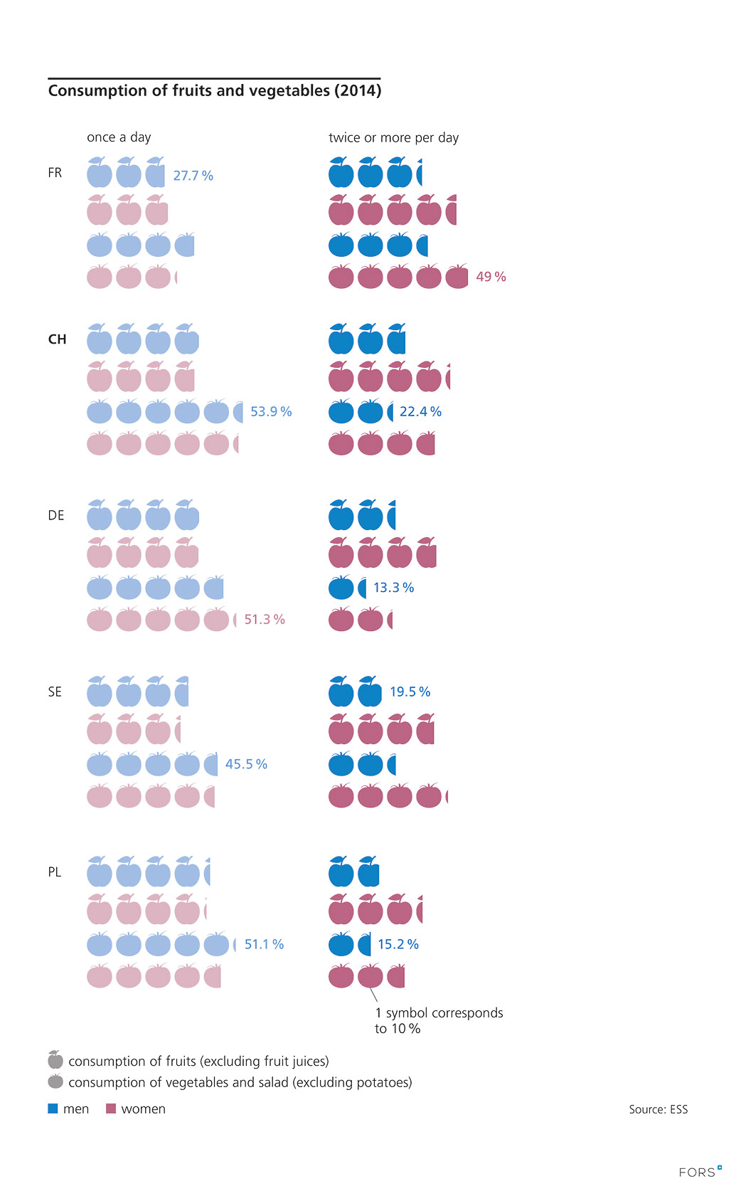 Question wording: “Please tell me how frequently you eat fruits – fruit juices do not count? Please tell me how frequently you eat vegetables or salad – potatoes do not count?”